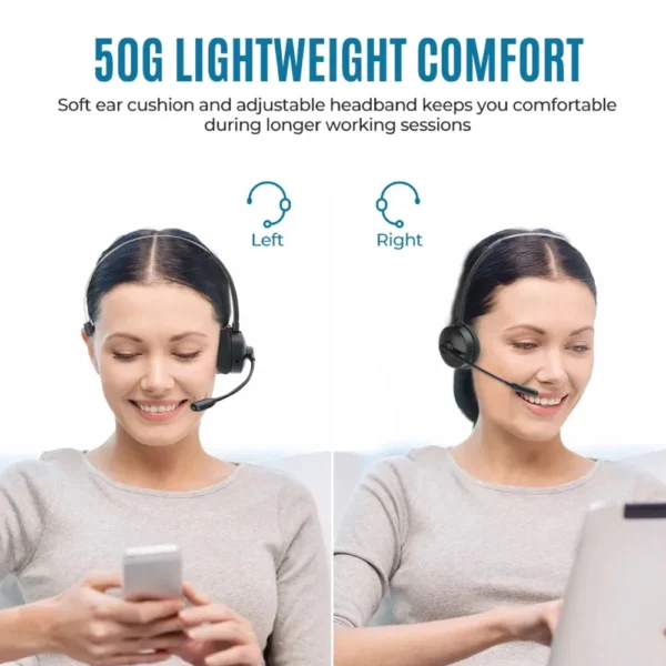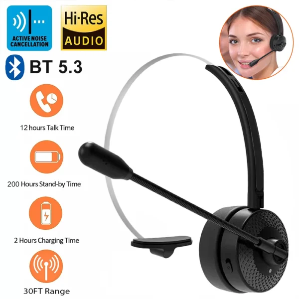 Upgraded Bluetooth 5.3 Headset Wireless Headphone with 18H Talking Time Headphones with Mic for Call Center Office