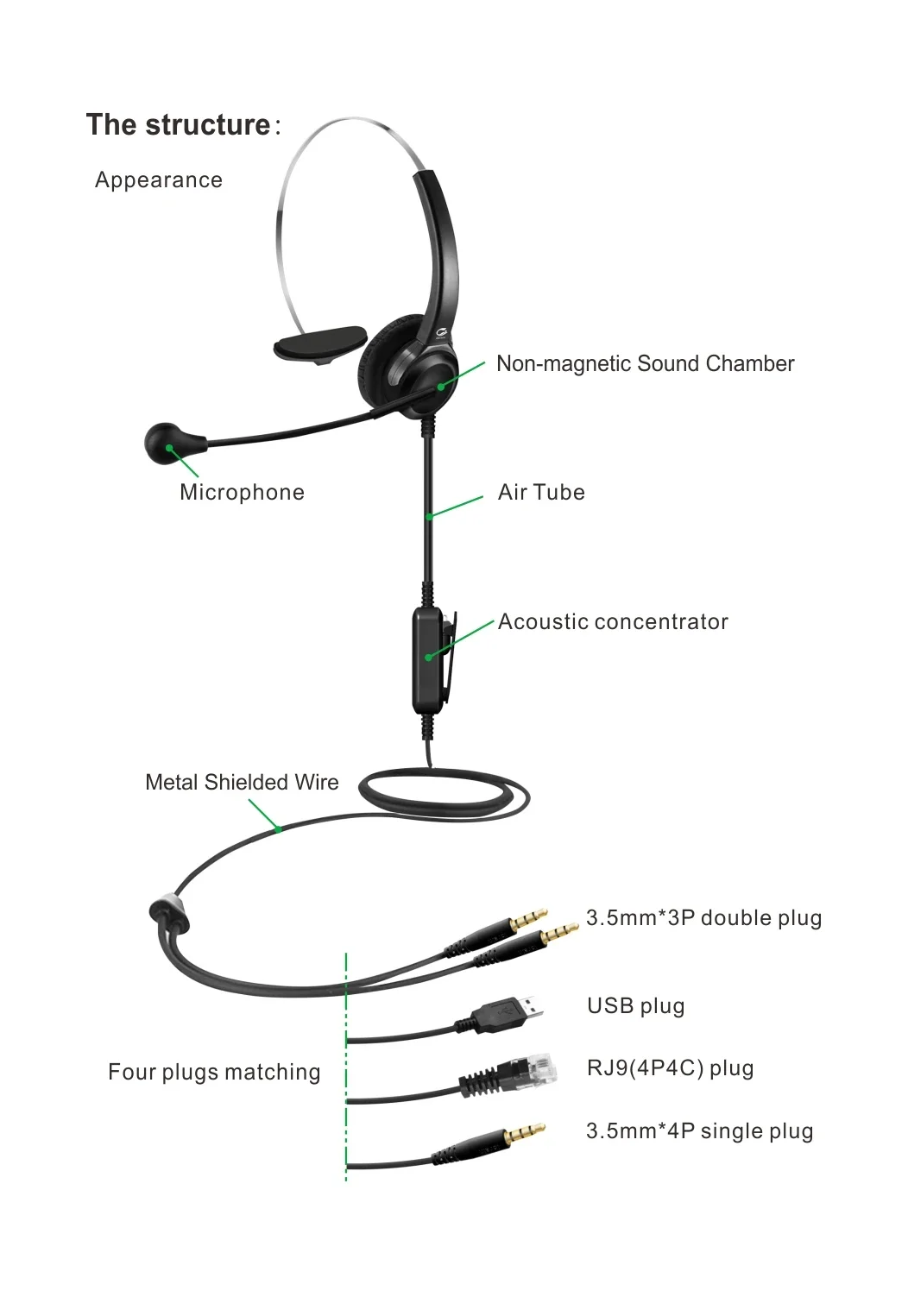 Portable headset lightweight call center headphones, ordinary and cheap headphones 3.5mm interface with microphone