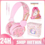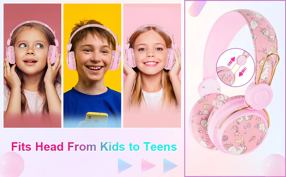 Stylish design and kid-friendly multi-color options, memory foam ear pads and adjustable hand straps provide a comfortable wearing experience.