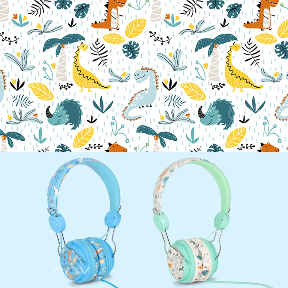 3.Silver Border Blue Cartoon Dinosaur Headphones