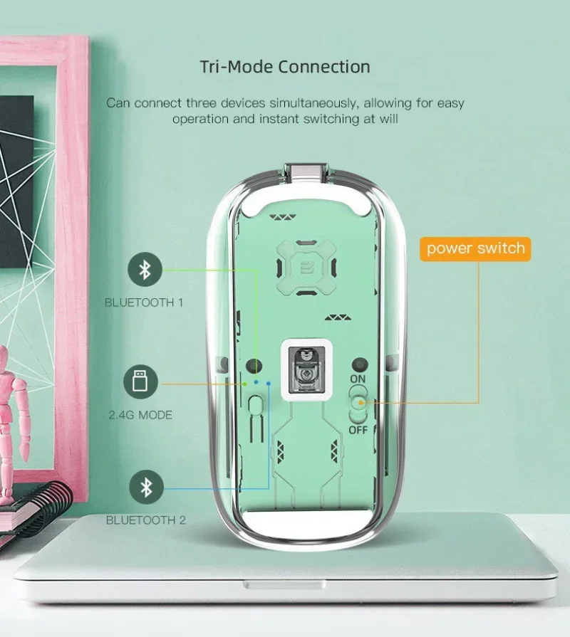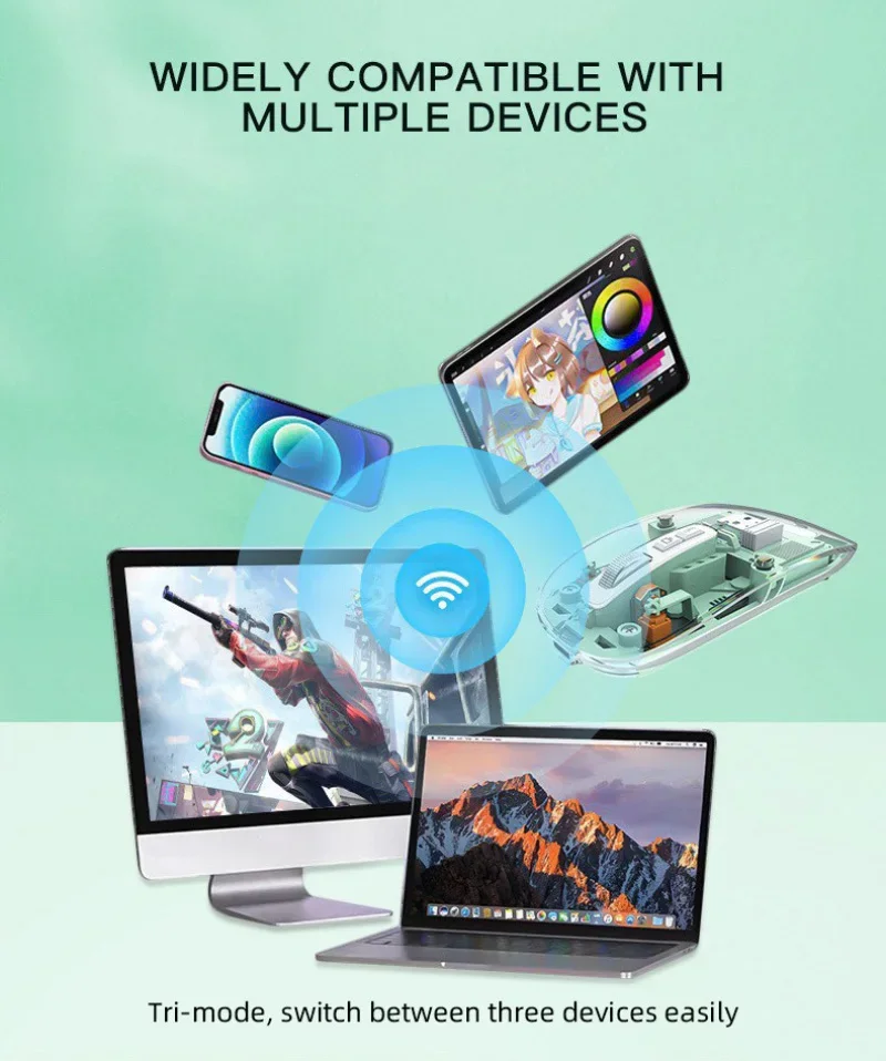 Wireless Bluetooth 5.0 Mouse Mouse 2.4G Rechargeable Mouse Transparent Shell Mice Mouse 2400DPI Game Mouse For PC Laptop Tablet