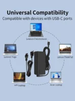This charger is compatible with a variety of laptop brands, including Lenovo ThinkPad, HP, Chromebook, yoga, Dell, Asus, and Acer.