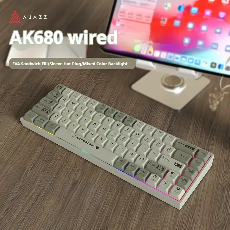 Ajazz Ak680 Wireless Mechanical Keyboard 65% Abs Keycap Hot Swap Gamer Keyboard Custom Gasket Gaming Accessories For Pc Laptop
