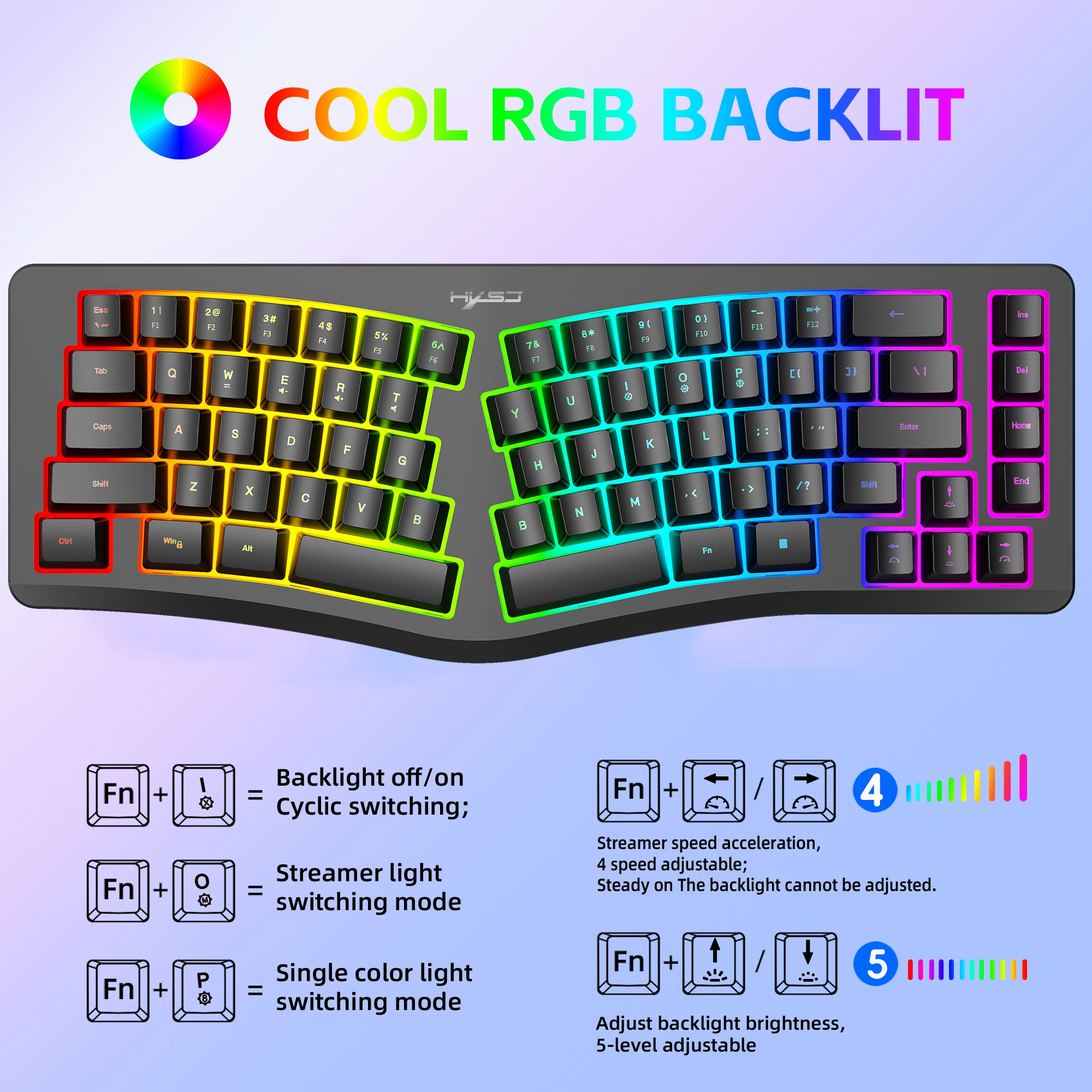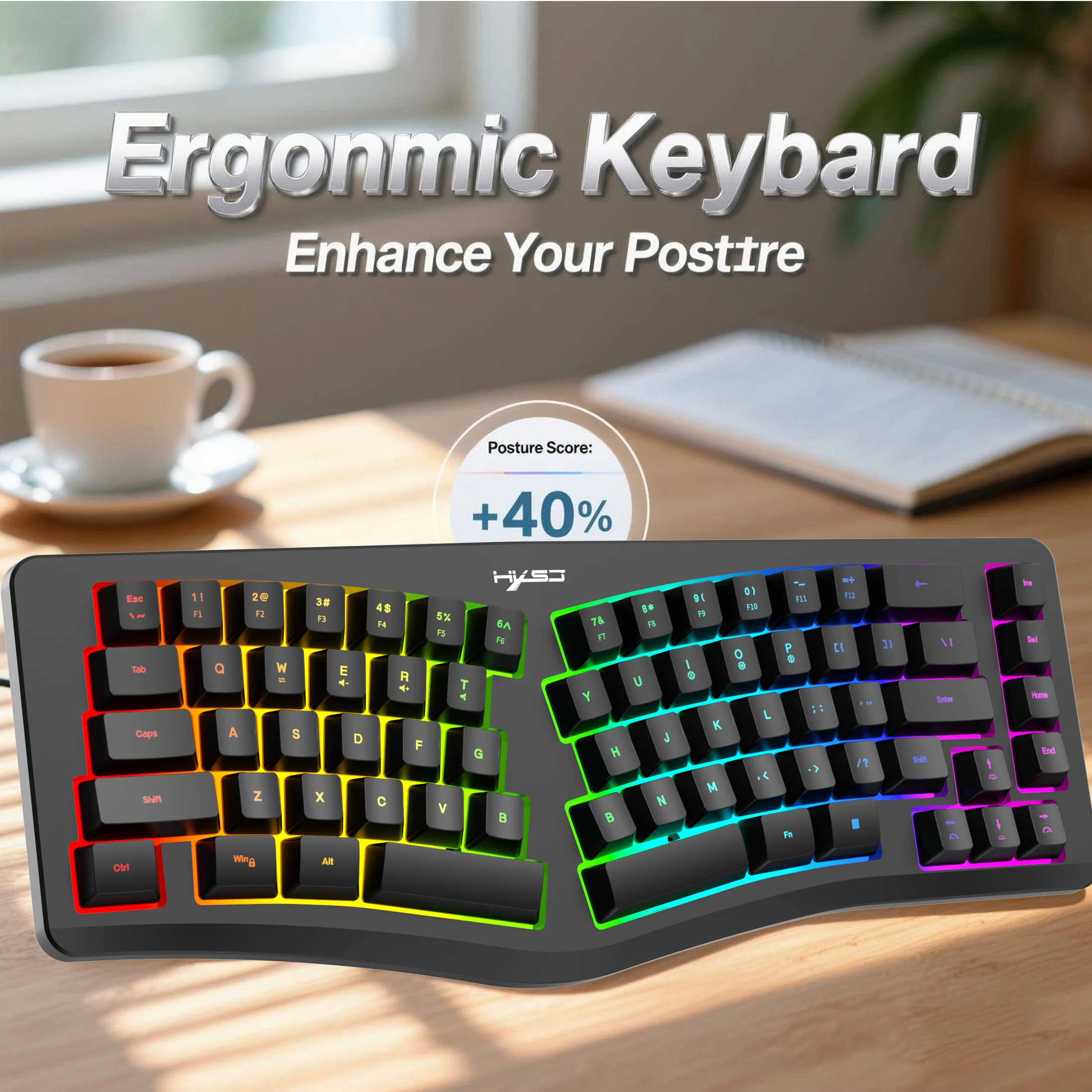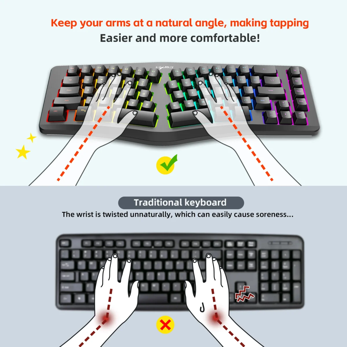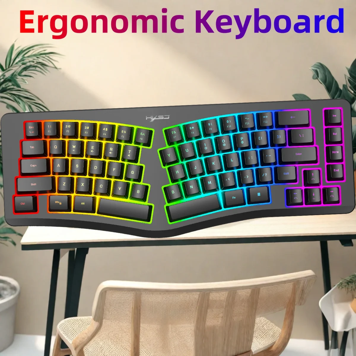 Ergonomic Keyboard 69 Key USB Wired Keyboard with RGB Backlight for Windows Computer Desktop Laptop