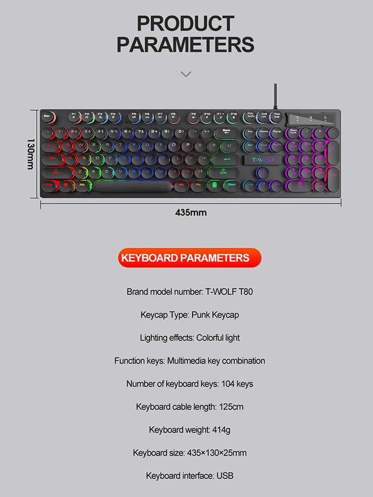 Rainbow Backlit Wired Keyboard and Mouse,Floating Keycap Strong, Wear-resistant, Comfortable Feel Keyboard for Business Office