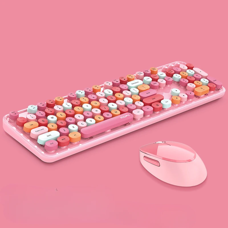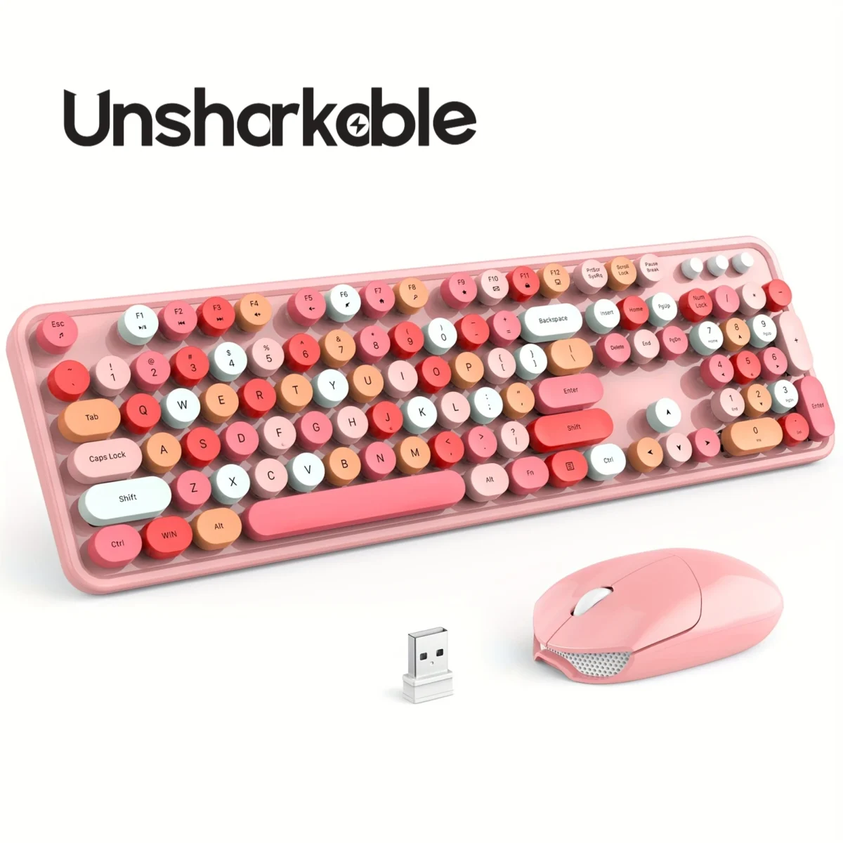 Unsharkable Keyboard and Mouse Combo 104 Keys Full Size 2.4 GHz Round Keycaps Colorful Keyboard USB Receiver Plug and Play